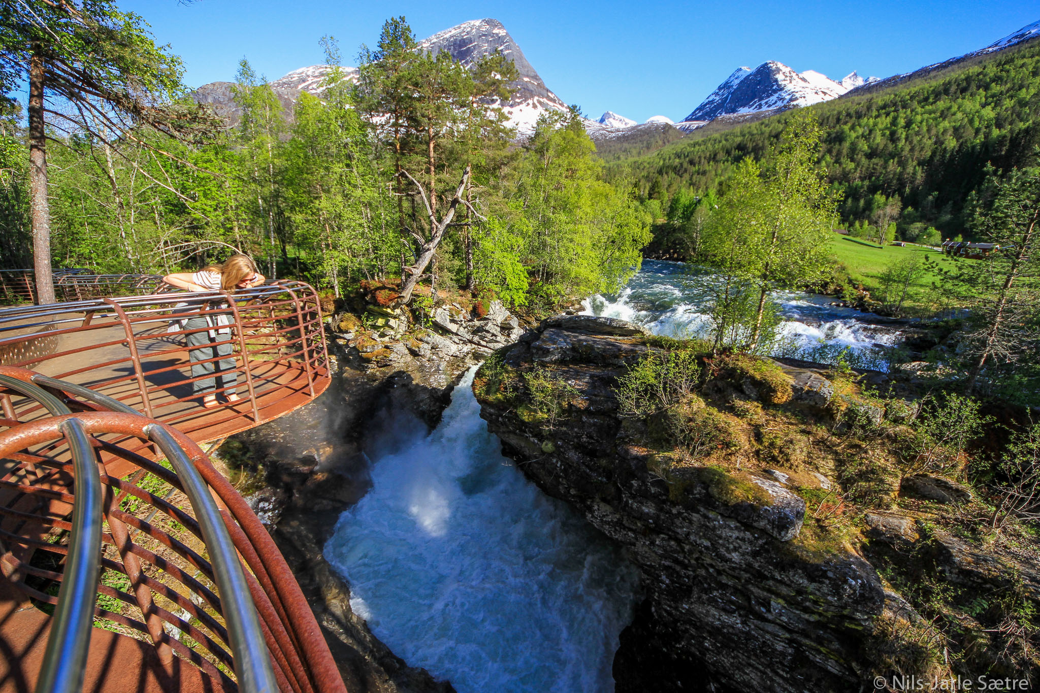 Første stopp ble Gudbrandsjuvet. Og for en timing. Den første varme sommerdagen i mai. Enorm snøsmeltning gjorde at elva brølte i all sin makt og prakt på sin vei nedover dalen. De sterke og klare grønfargene fra trær og marker slo mot deg overalt, mens fjelltoppene fortsatt hadde snø på sine tinder.