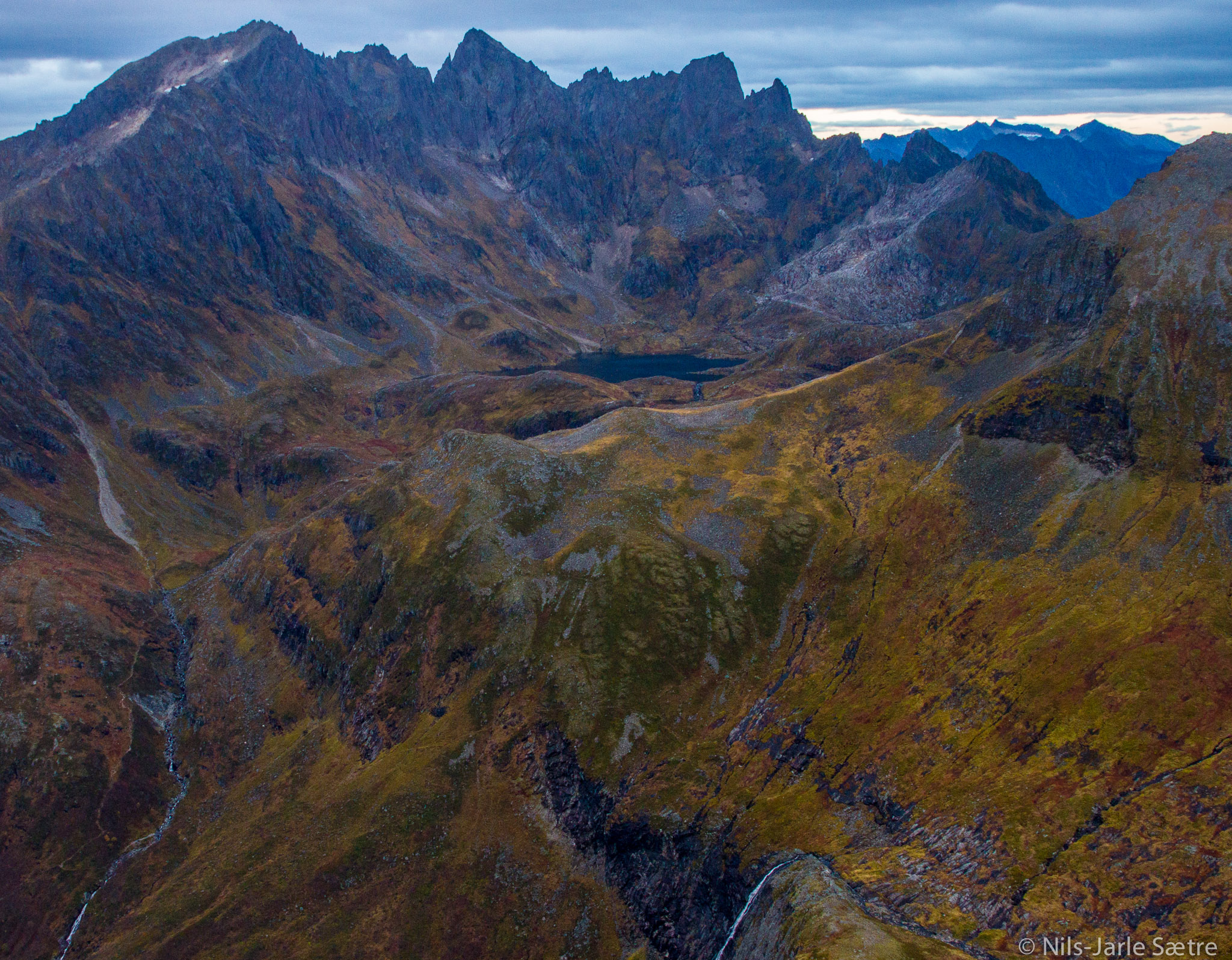 Jeg klatret ned igjen. Fikk på zoomlinsa. Og klatret litt opp slik at jeg fikk hodet over kanten. Jeg fant et par små bergsprekker å sette beina på slik at jeg fant en stabil stilling.
