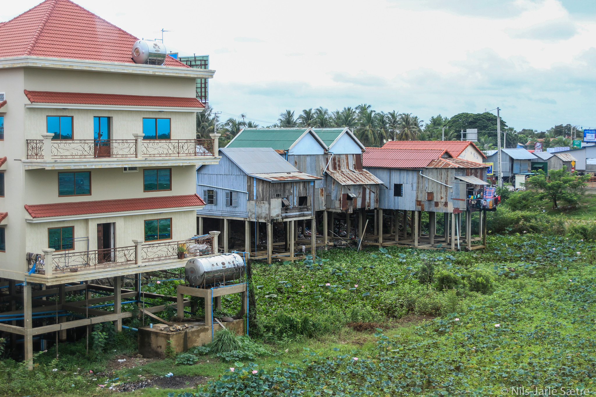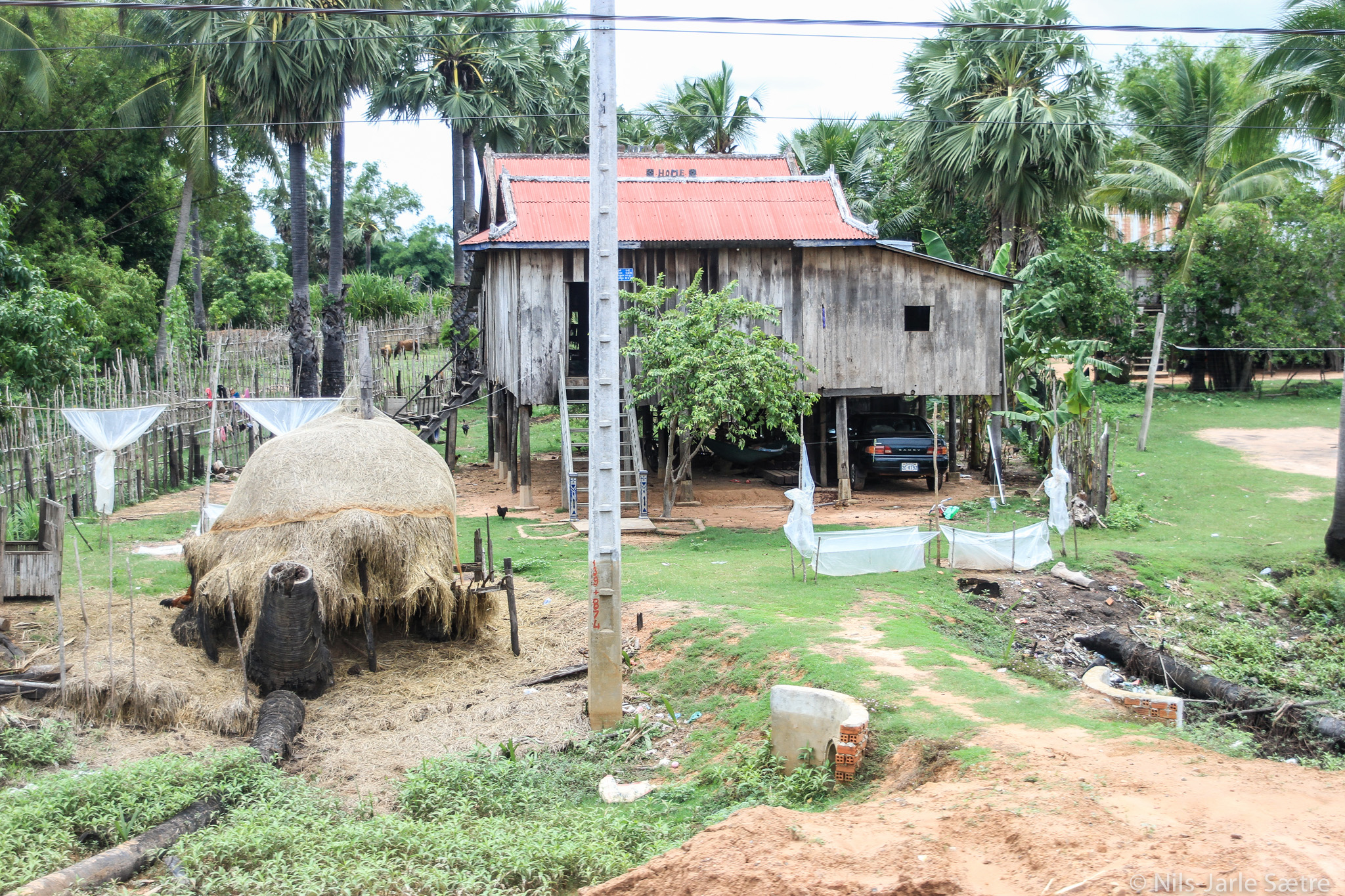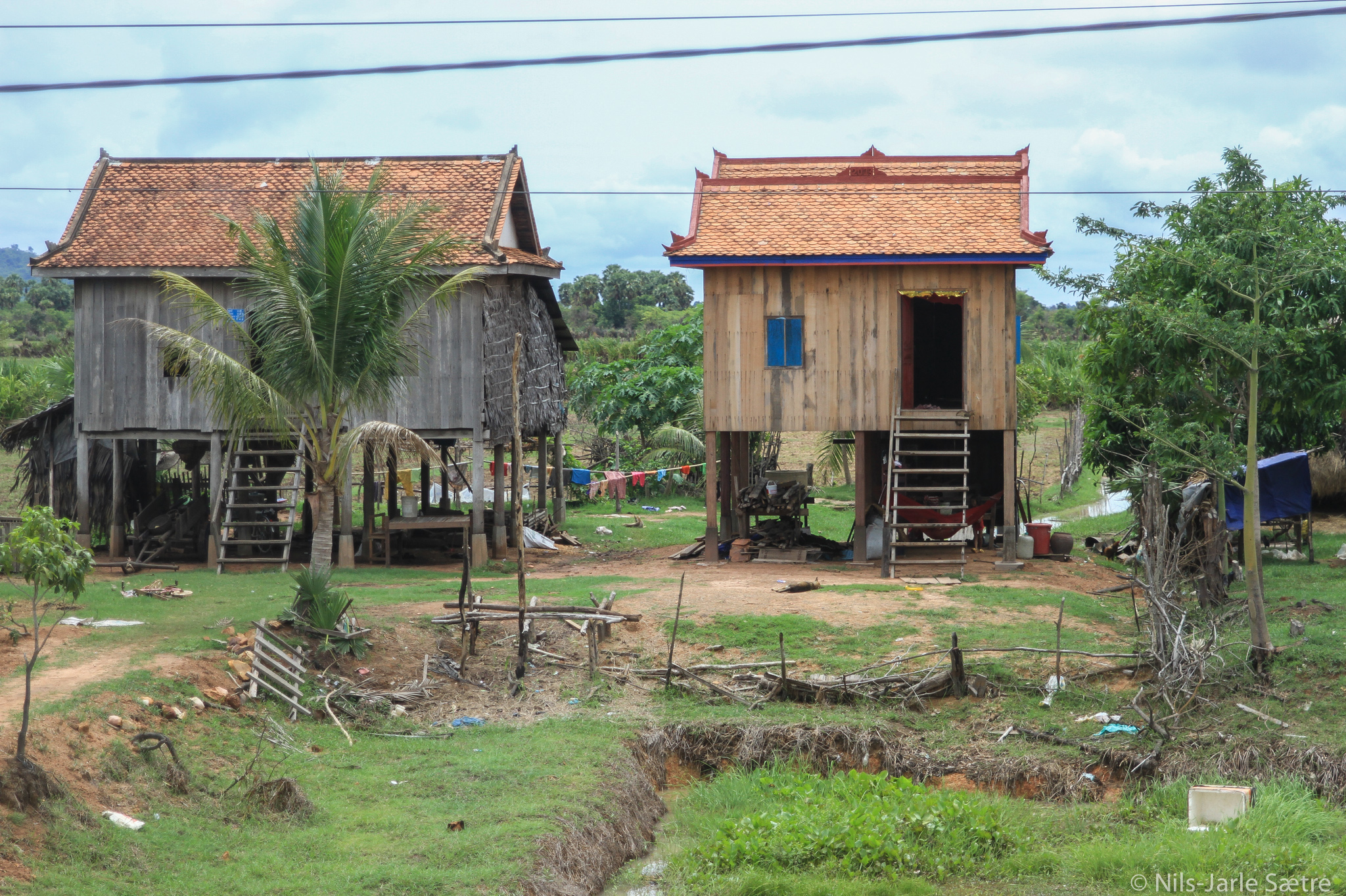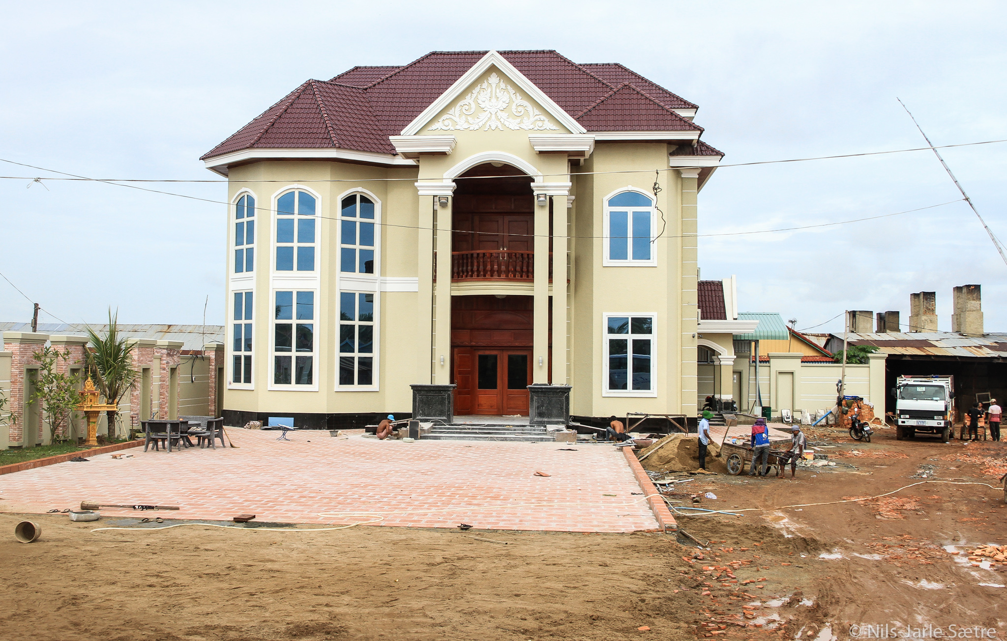 Spesielt landsbygda i Kambodsja er så fjernt som det overhodet kan bli fra livet i Norge. Landet er preget av mye fattigdom. Likevel er det litt absurd å se skur og trehytter, og plutselig midt blant dem dukker det opp et svært flott hus. Det ser utrolig malplassert ut, og for en vestlig turist kan virke merkelig at velstående personer bygger et slikt hus med skur på alle kanter.