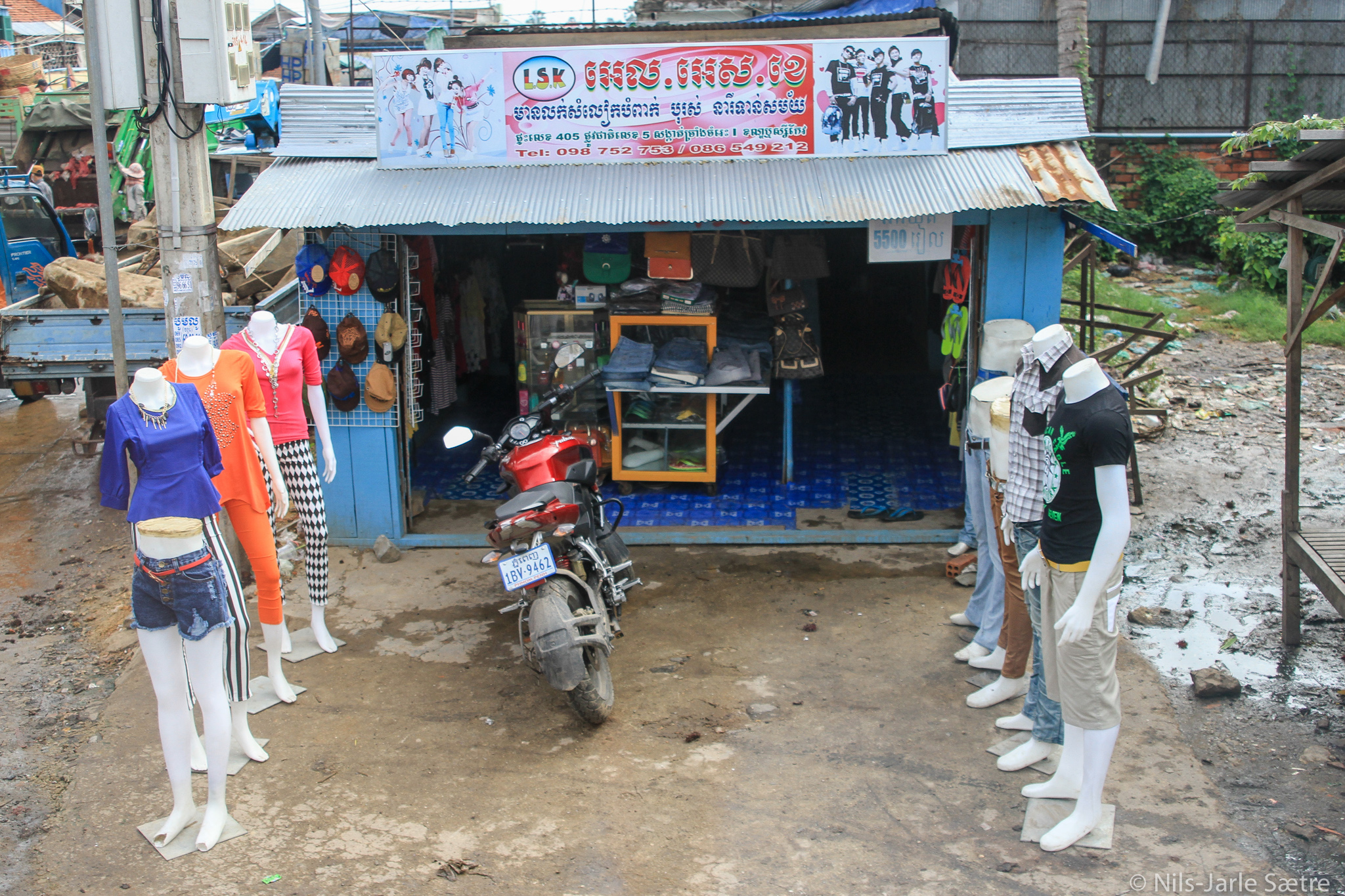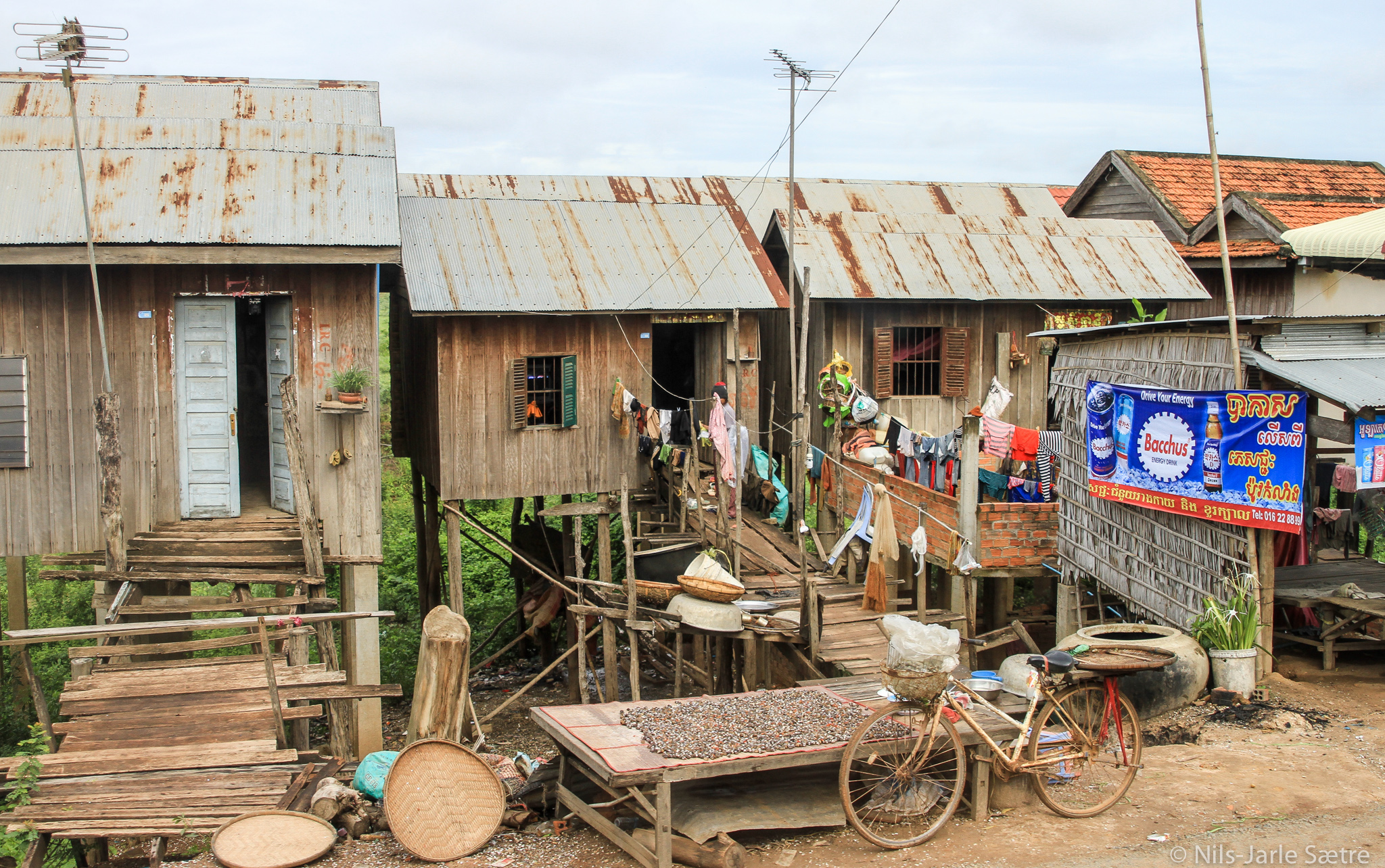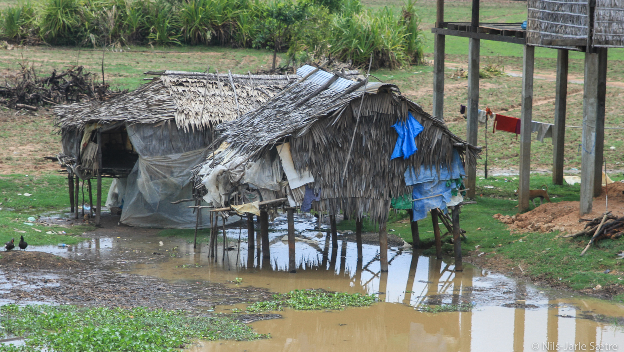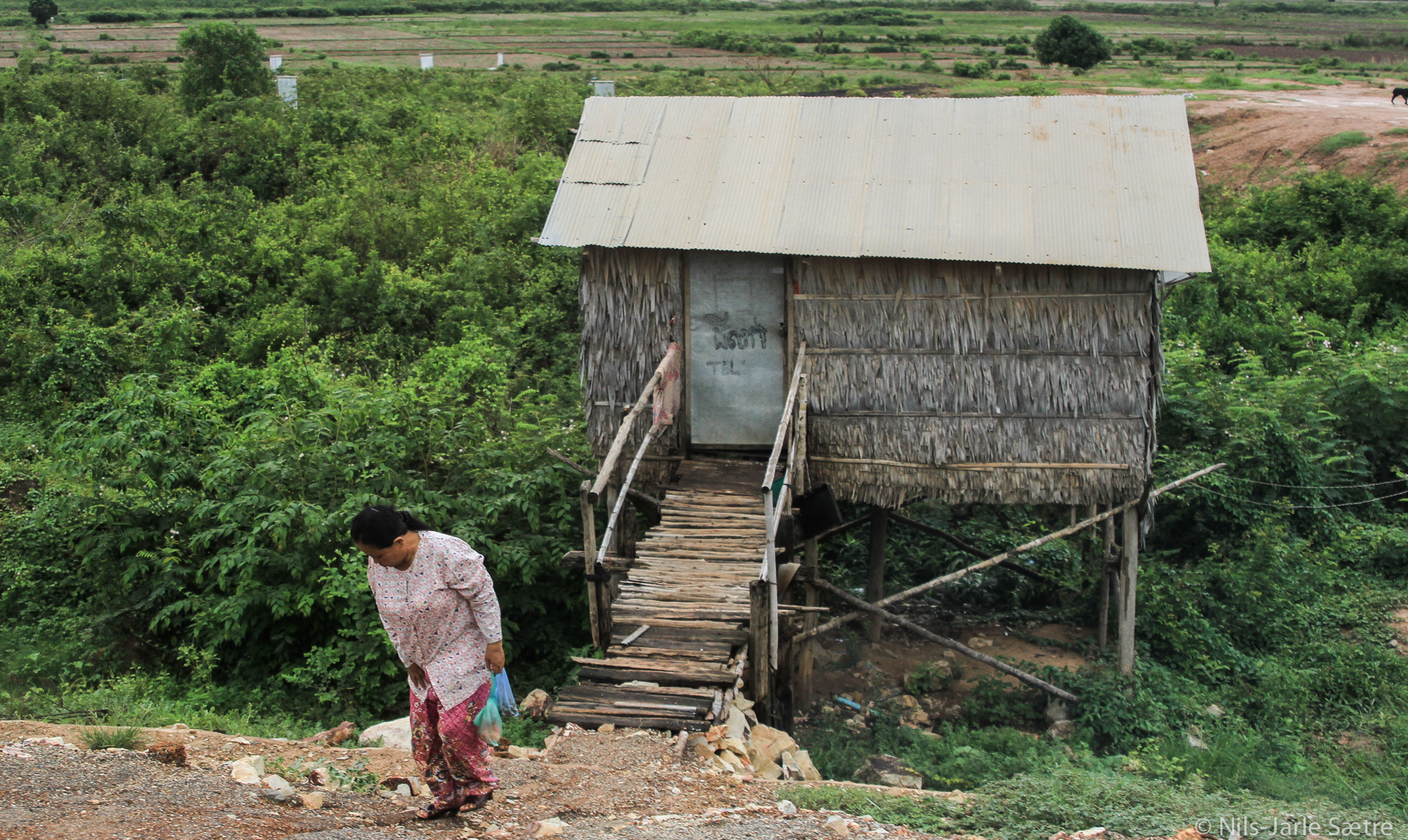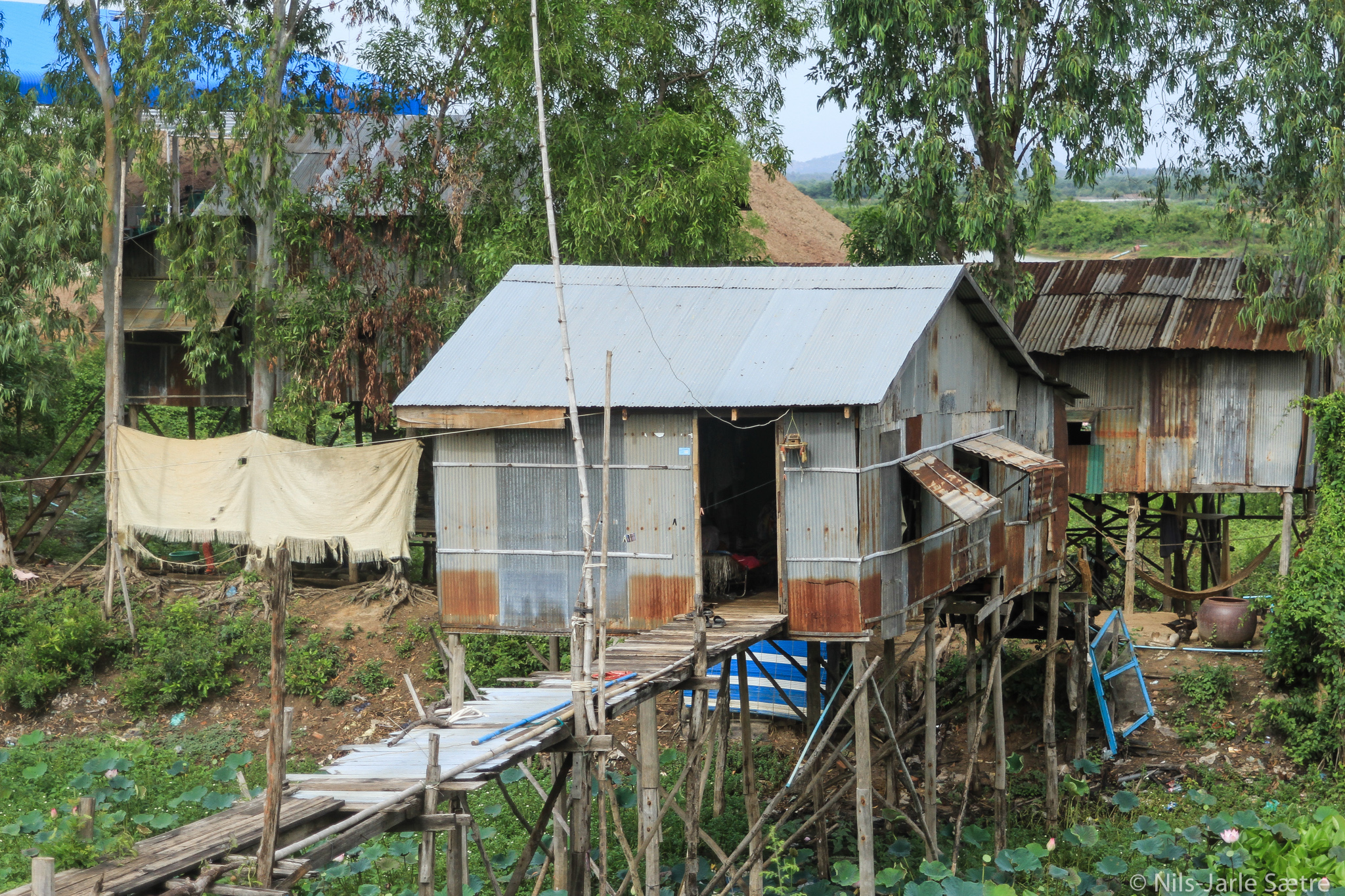 Spesielt landsbygda i Kambodsja er så fjernt som det overhodet kan bli fra livet i Norge. Landet er preget av mye fattigdom. Likevel er det litt absurd å se skur og trehytter, og plutselig midt blant dem dukker det opp et svært flott hus. Det ser utrolig malplassert ut, og for en vestlig turist kan virke merkelig at velstående personer bygger et slikt hus med skur på alle kanter.