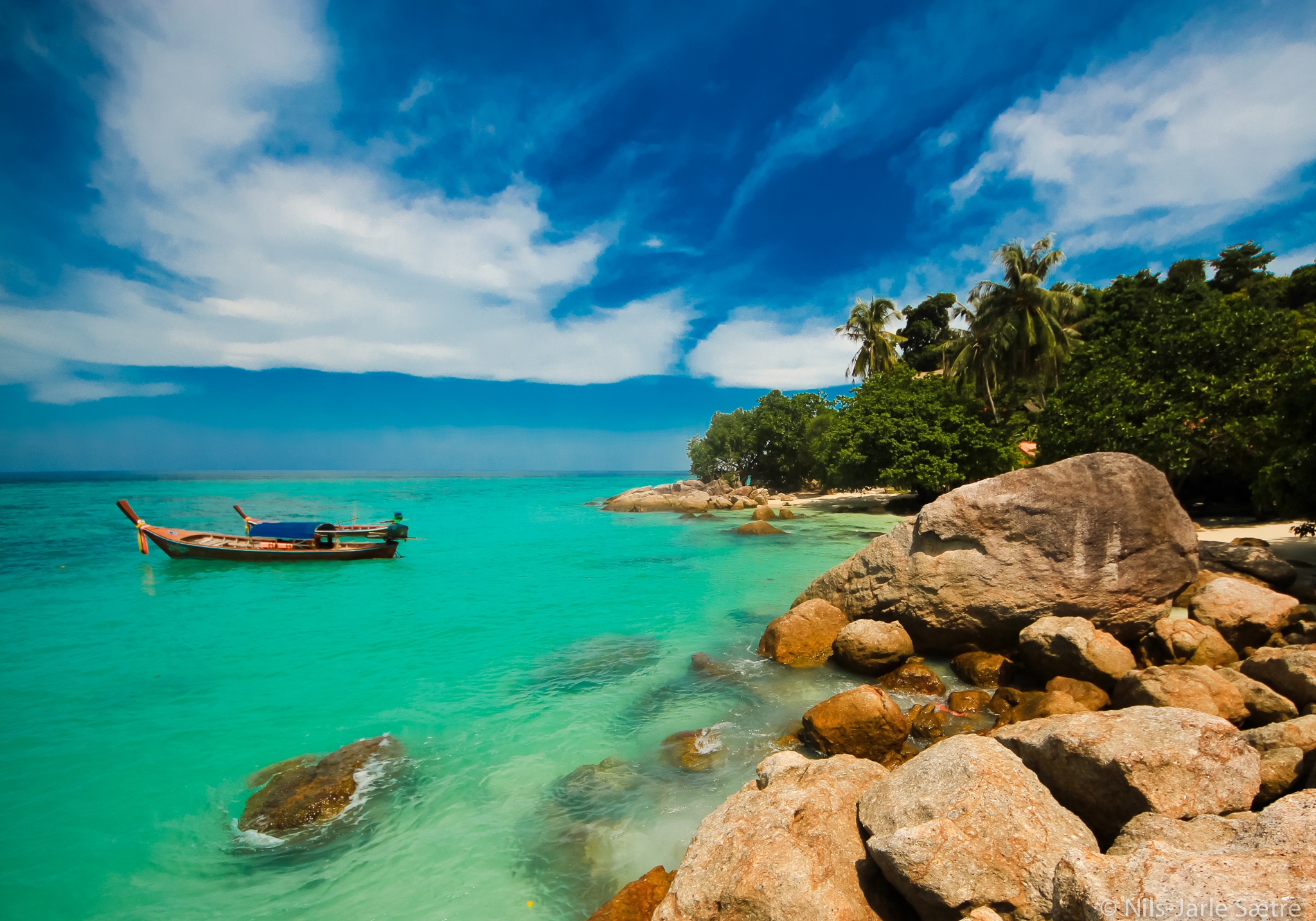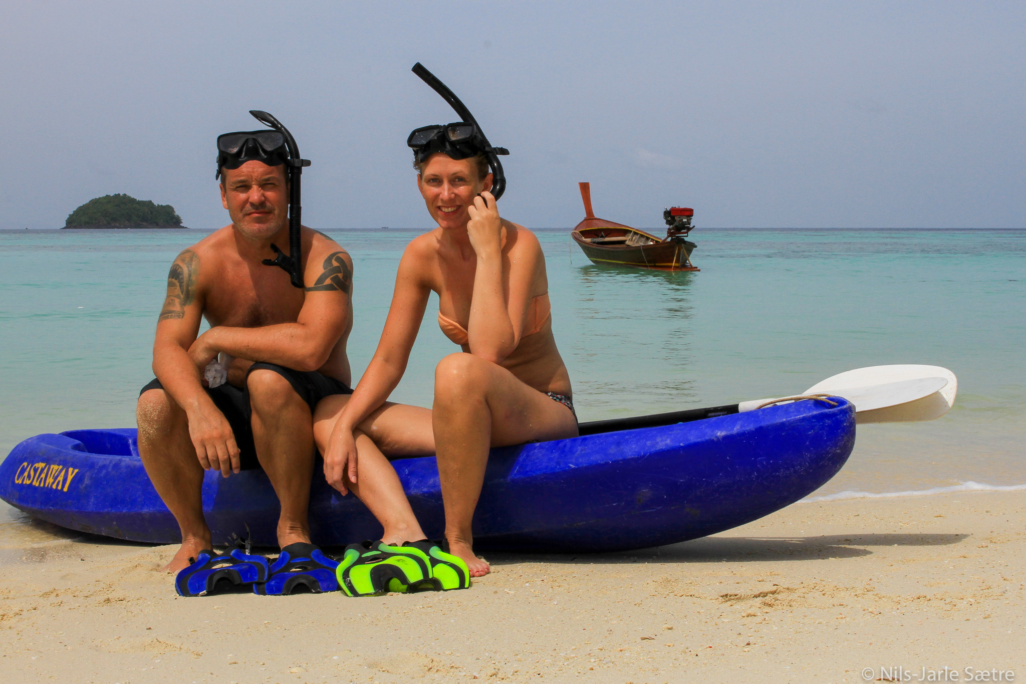Ni fantastiske dager på ei øy som ikke er større enn at det tar en time å gå rundt hele øya langs strandkanten. Da spilte det ikke noen rolle om at hel dag ble brukt i fly (Bangkok-Hat Yai, taxi (flyplass-sentrumi Hat Yai), minibuss (Hat Yai-Pak Barra) og båt (Pak Barra-Koh Lipe) for å nå vårt reisemål. Båten fra Pak Barra er også den eneste måten å komme seg dit utenfor sesong, og det tar to timer med kabincruiser. Vær forberedt på å bli banket litt gul og blå, for her tas det ingen hensyn i bølgene 😦