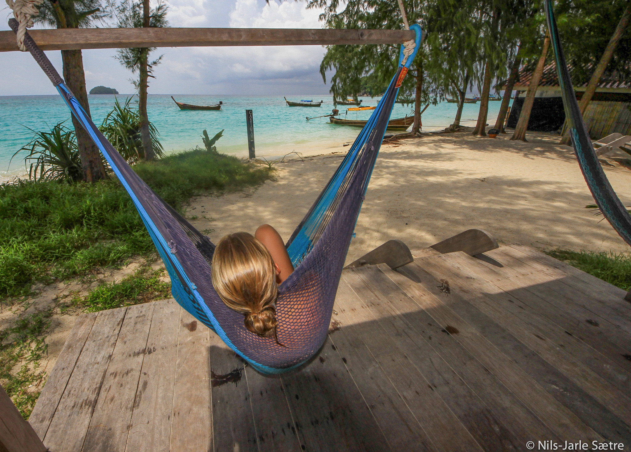 Svært primitivt med andre ord. Men i paradis trenger man ikke noe mer. For luksusen lå utenfor døren. Sand, palmer og asurblått hav.