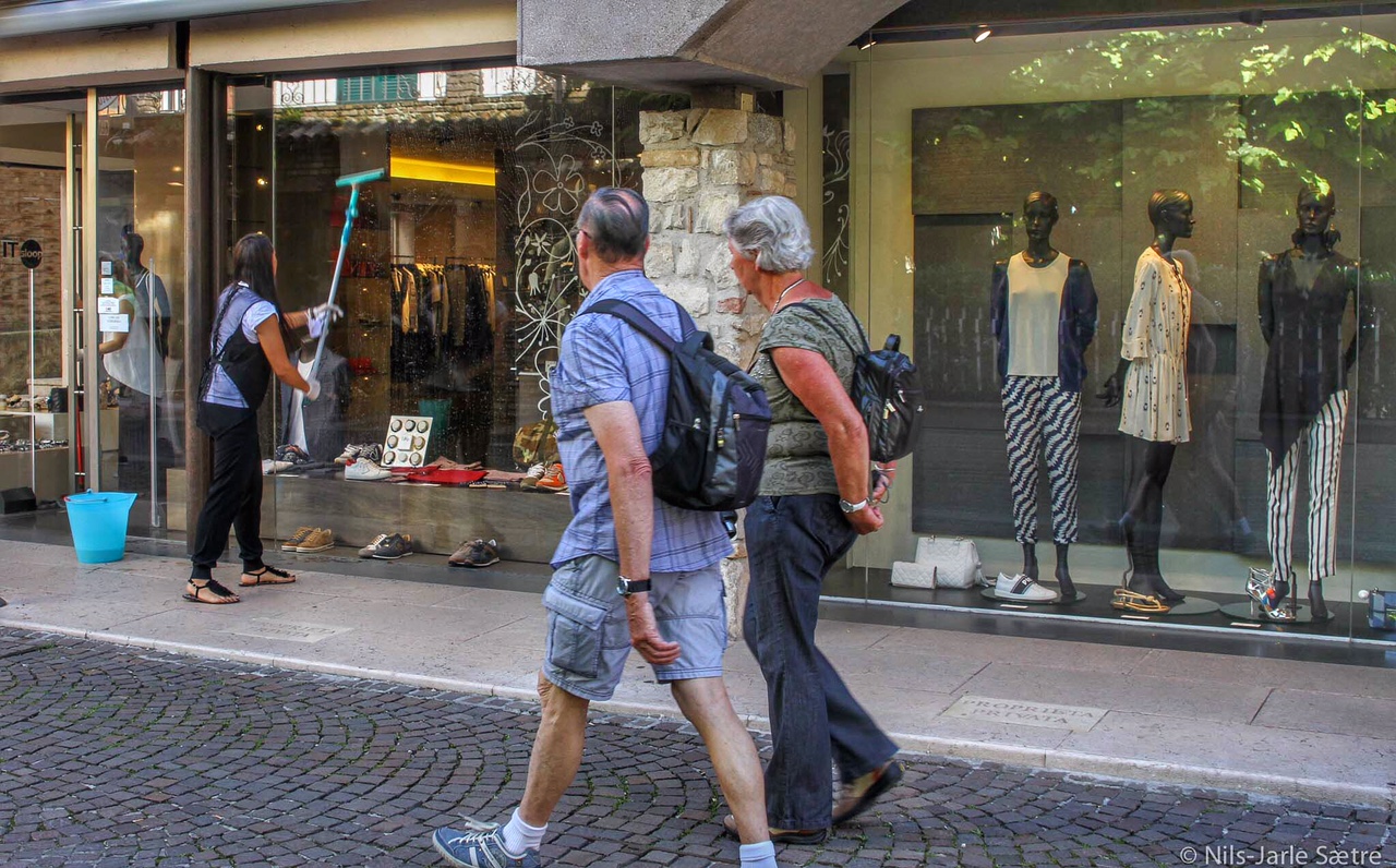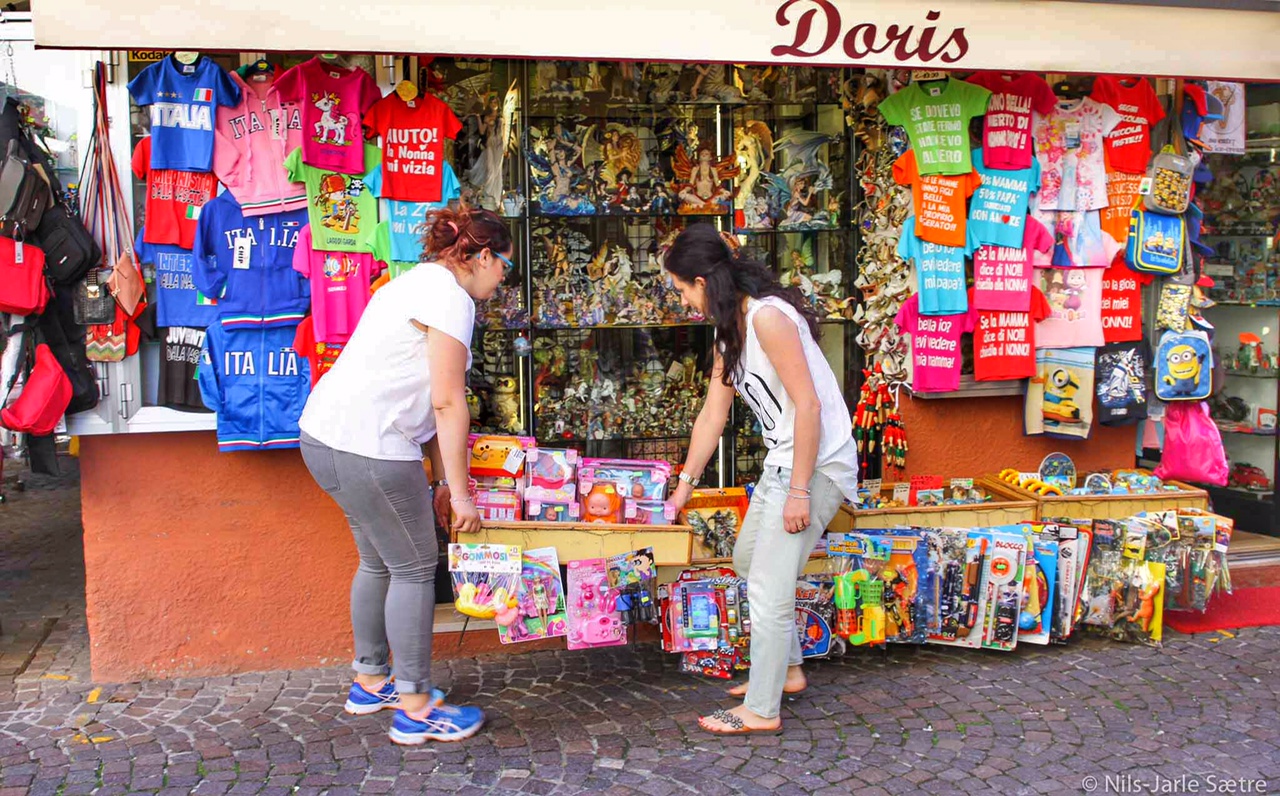 Kontrastene er åpenbare. De med litt tykkere lommebok kjøper bluse til 300 euro, mens masseturismen handler souvenirer til tre euro 20 meter lenger nede i gata. I en liten landsby som Sirmione, så ser man fort hvem som er hvem.