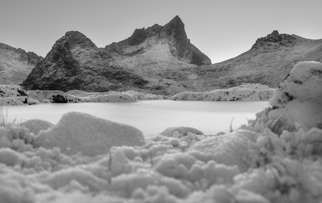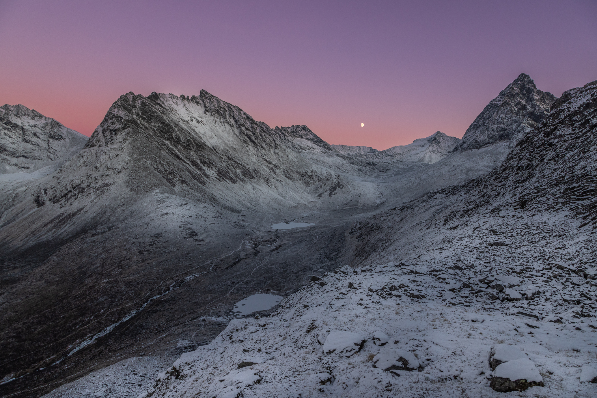 Det var åtte minusgrader i den dystre og mørke dalen. Dagen hadde akkurat begynt å gi lys til omgivelsene, men fjellrekka i sør nektet å slippe sola til. Utrolig nok var det ikke bevegelse i de få grasstråene som ikke hadde fryst fast. Motvillig trakk jeg likevel buff’en over munn, nese og ørene. Lua fikk ligge i sekken. Litt viking må en jo være.