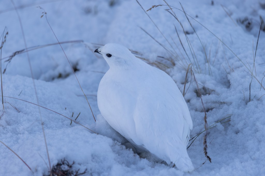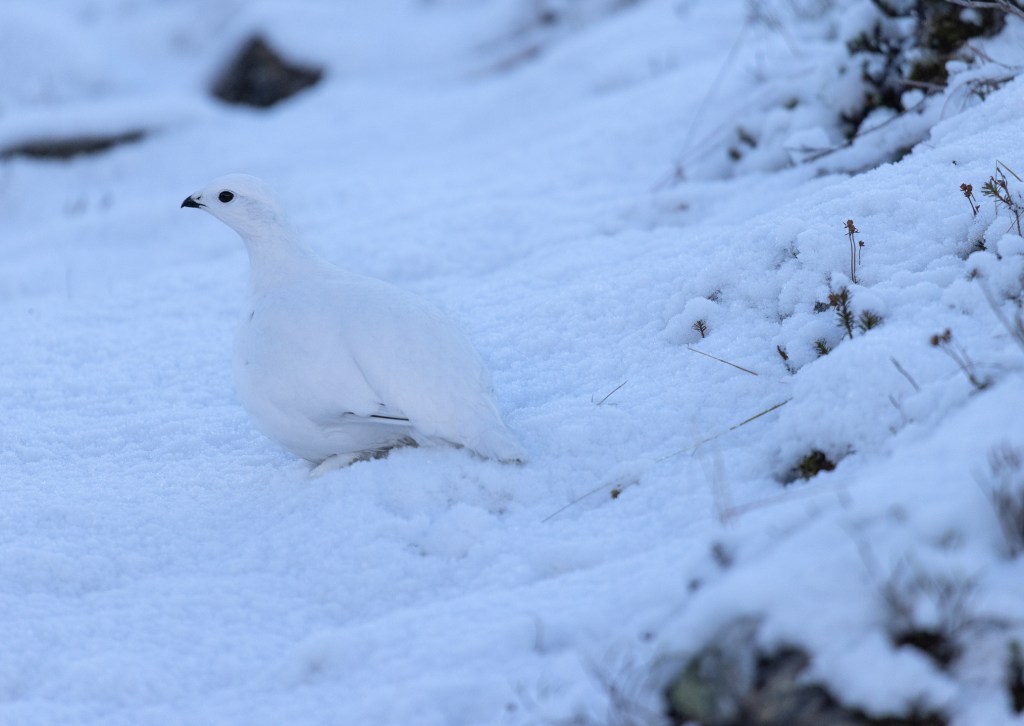 En rype. Sekken ble satt rolig ned på bakken. Kameraet ble gjort klart. Først noen bilder på avstand. Men hvit mot hvit er ikke så lett å se. Jeg måtte nærmere.
